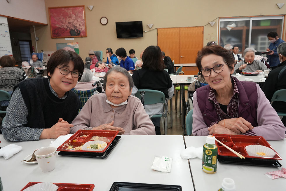 そしてお待ちかねの昼食です。当苑の厨房で調理した手作り弁当をご家族様も一緒に召し上がっていただきました。